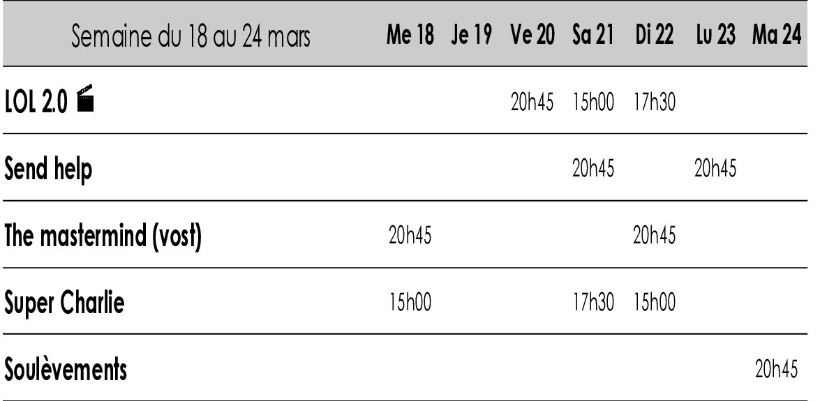 PROGRAMME DU 4 février au 3 mars 2026
